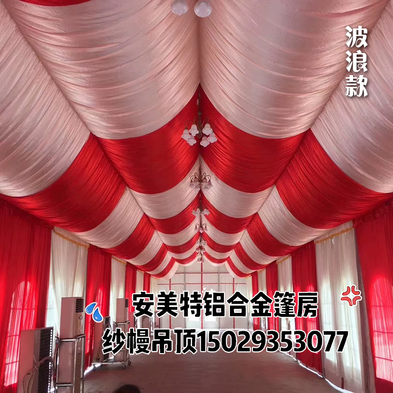 名称:吊顶篷房顶棚纱幔装饰新款 婚庆婚宴酒席喜棚房帐篷推拉篷吊顶布幔请选择