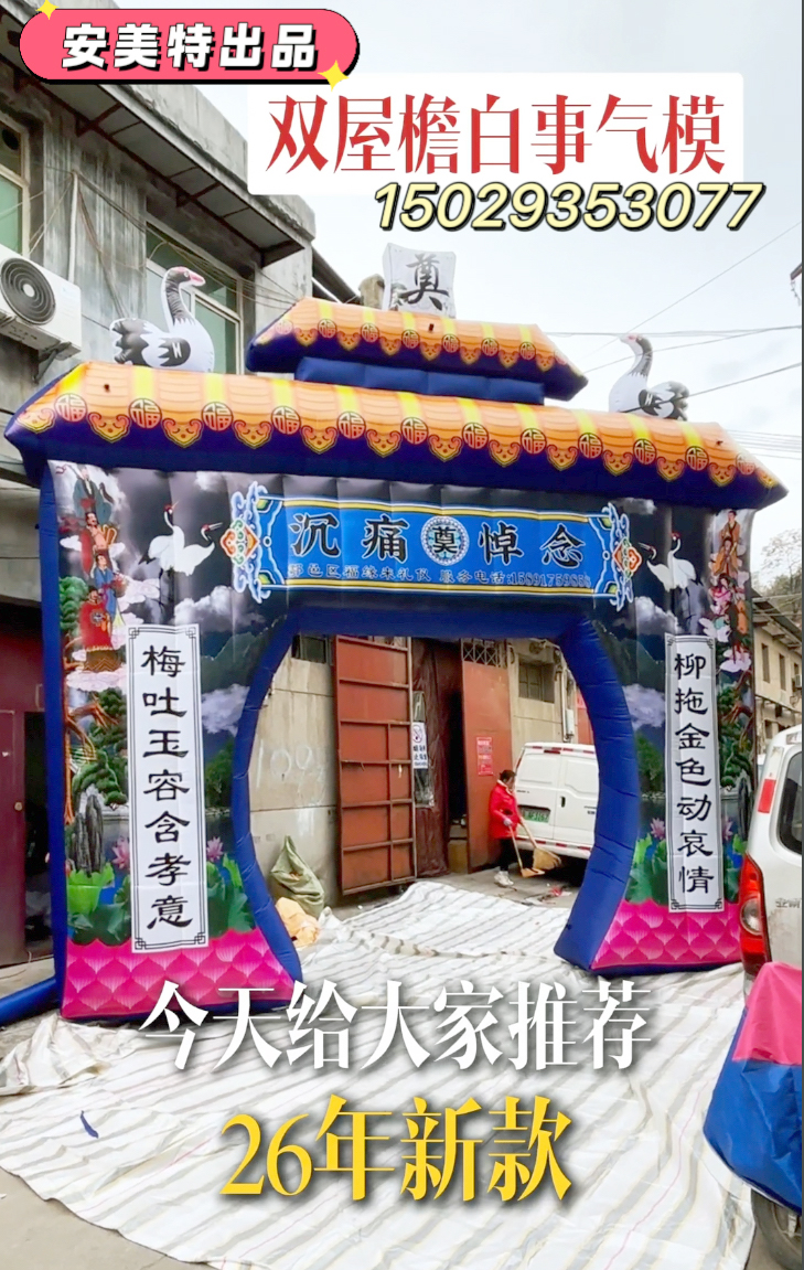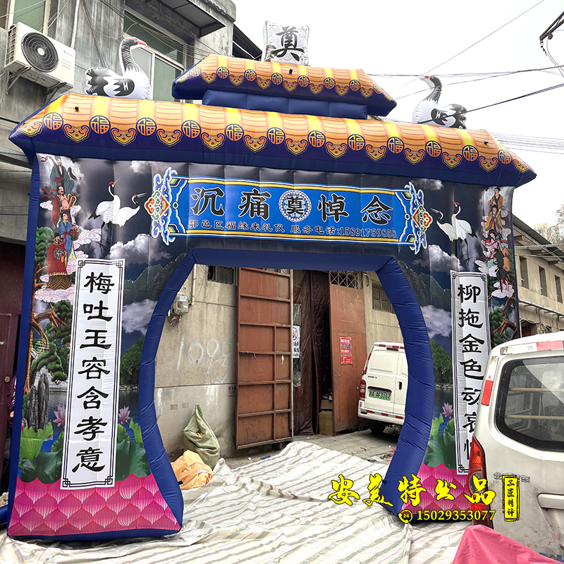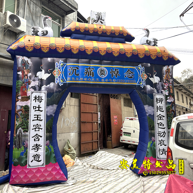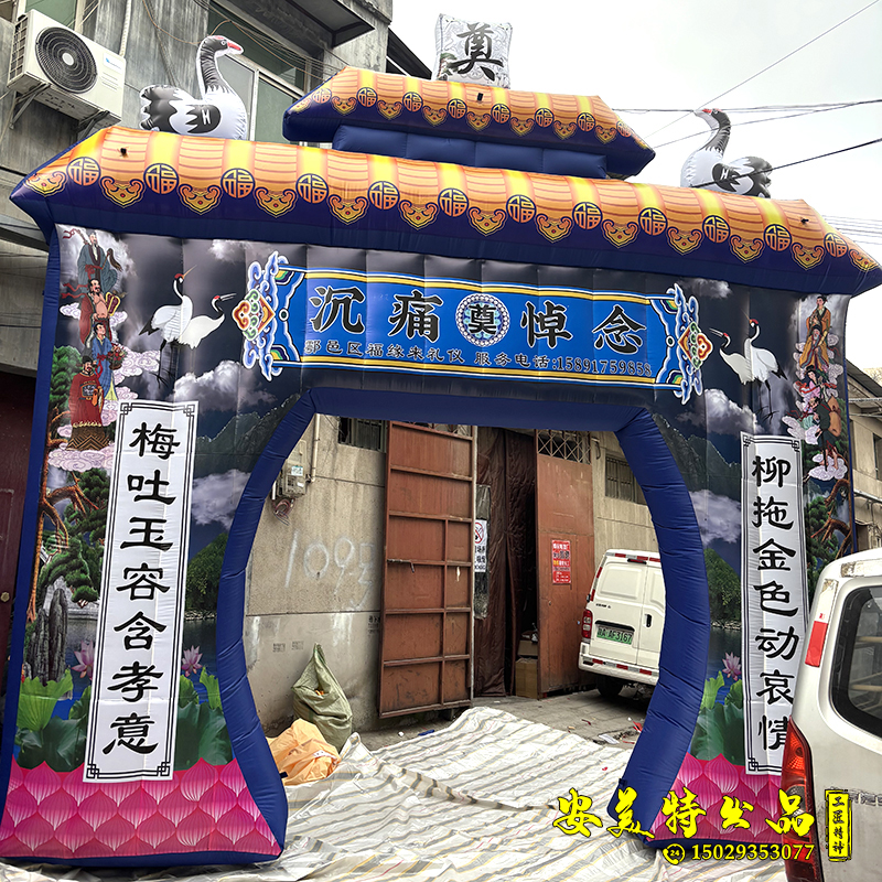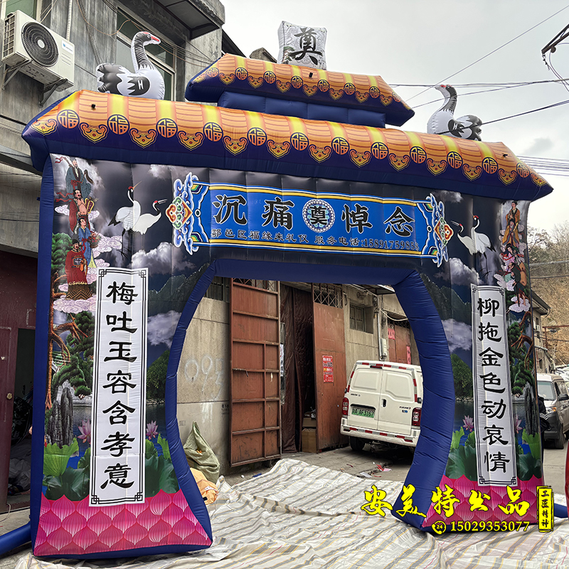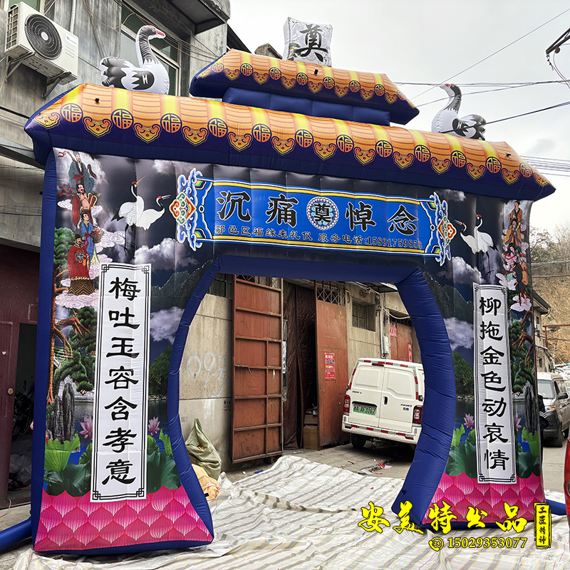 名称:新款夜光丧事拱门气模殡葬灵堂彩绘白事牌坊LED灯带耐用不怕折新品上市